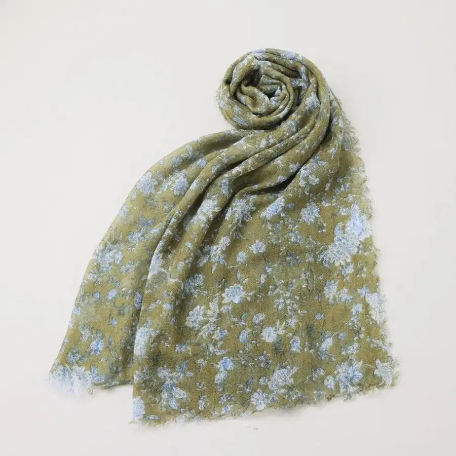 • 마가렛호웰 실크 스카프 네이비 꽃무늬 새상품급