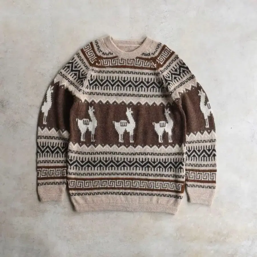 알파카 또는 라마 모티브가 장식된 울 스웨터.