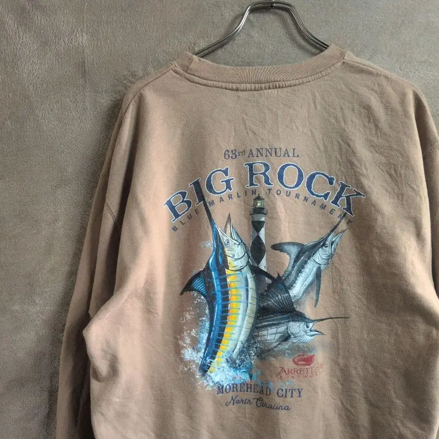 00s 인기 물고기 패턴 백 프린트 맨투맨 황새치 베이지