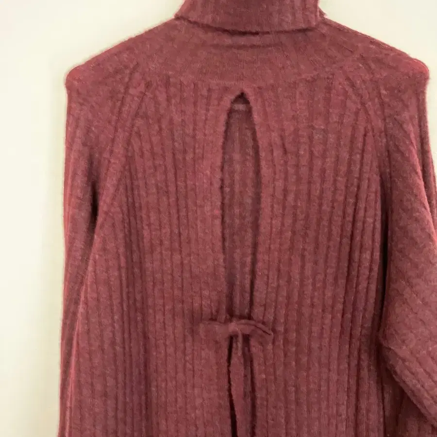 리브 니트 터틀넥 원피스, 등 트임 디자인이 특징입니다. - 색상: 버건디 - 디자인: 터틀넥, 등 트임 - 소재: 리브 니트 - 소매: 긴팔 점원이 벨트를 하고 코디한 것을 보고 구매했습니다. 리본이 귀여워 앞으로 해서 입을 수도 있습니다. 방문해 주셔서 감사합니다.
