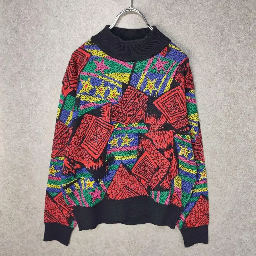 [ Givy 화려한 기하학 패턴 니트 스웨터 M ] 구제 레트로 빈티지