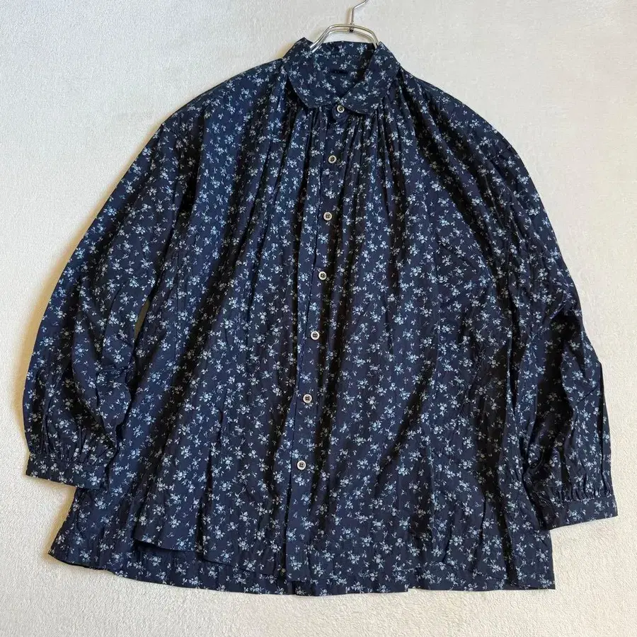 [컨디션 최상] 45R 태핏모리 꽃 프린트의 주름 블라우스 인디고