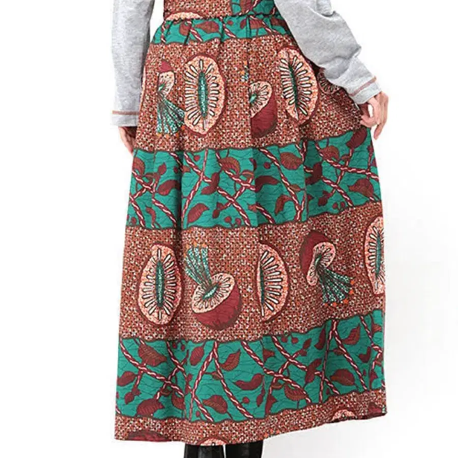 키위 후르츠를 아프리칸 바틱 스타일로 어레인지한, 어디에서도 볼 수 없는 오리지널 패턴입니다. 키위 패턴이 시선을 사로잡는 귀여운 롱 스커트입니다. 작게 접어서 발송해 드립니다.