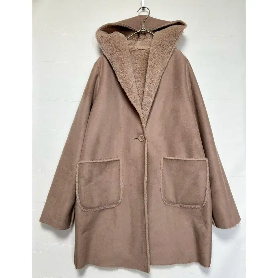 [ 새상품급 ] 페이크 무스탕 코트 롱 후드 부착 M 보아 안감