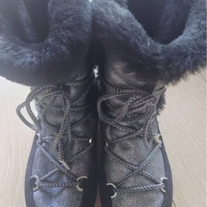 실버 퍼 무스탕 앵클부츠 박스 포함 블랙