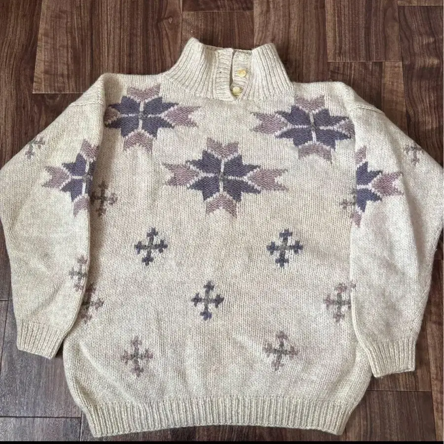 90s usa 구제 빈티지 핸드 니트 울 스웨터 노르딕 무늬