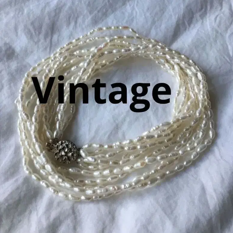 빈티지 담수 펄 실버 목걸이 담수 진주 5연 화이트