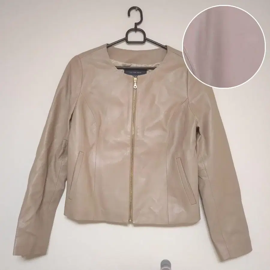 sophila 노카라 가죽 자켓 핑크 베이지 램 가죽