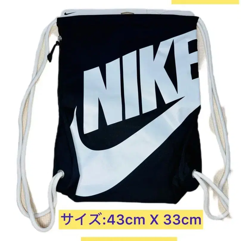 ■ 미사용 새상품 정품입니다. ■ 네고 불가합니다. NIKE의 빅 로고가 특징인 블랙 냅색, 사이드 지퍼 부착으로 사용하기 쉬운 디자인. - 브랜드: Nike - 색상: 블랙 - 디자인: 로고 - 타입: 냅색 - 소재: 폴리에스테르 - 사이즈: H 43cm x W 33cm - 용량: 13L 대지를 빼고 제품을 접어 비닐로 포장합니다. 약간의 주름 등은 이해해 주십시오. 간편 포장에 협조해 주시면 감사하겠습니다. 잘 부탁드립니다.