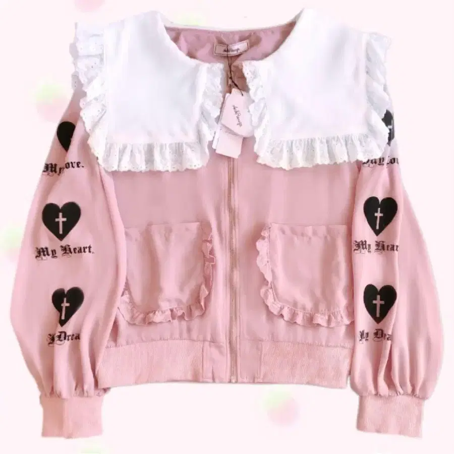 커다란 옷깃 디자인으로 얼굴 주변을 포근하고 귀엽게 연출해 줍니다. 영문과 하트 프린트가 달려 있습니다. 지뢰계나 양산형 코디에 어울립니다. ※ 공식 상품명이 [조젯 후드티]이지만, 블루종 같으며 원래부터 후드는 달려 있지 않은 것 같습니다. 기장 53cm 가슴 너비 48cm 소매 길이 61cm 어깨 너비 36cm 색상 - 핑크 계열