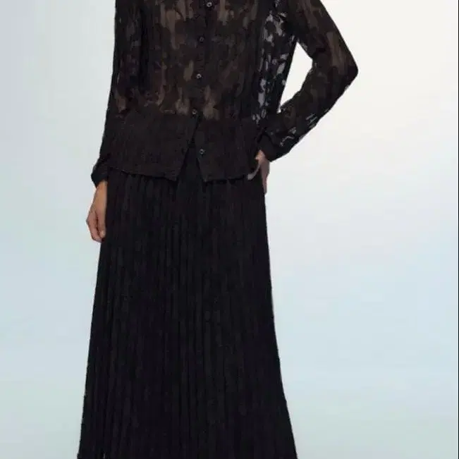 레이스 플레어 롱 스커트 블랙 ZARA