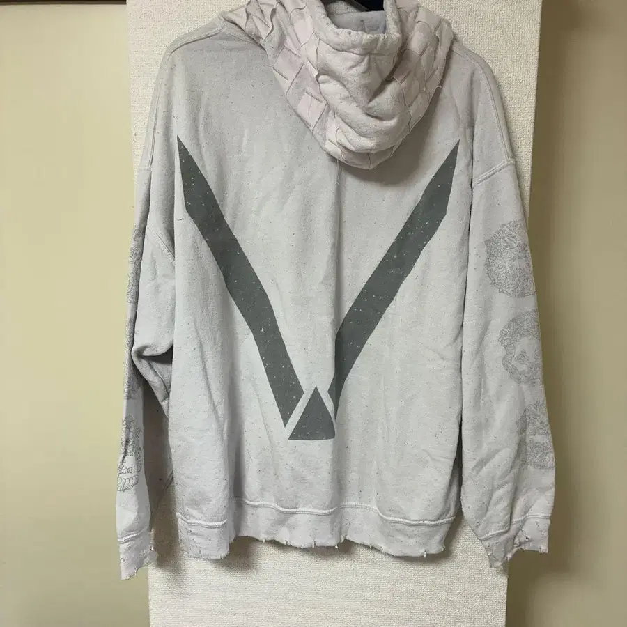 2017S/S 아이템. 사스콰치 특유의 데미지 가공, 후드가 뜨개질된 유니크한 디자인. 양쪽 소매에는 일본적인 느낌의 드래곤 프린트, 뒷면에는 V 프린트. 양쪽 소매, 뒷면은 리플렉터 프린트 사양으로 빛에 반응합니다. 바디 전체에 사용감, 마찰, 보풀이 약간 있지만 원래 빈티지풍 디자인이라 신경 쓰이지 않을 것 같습니다.