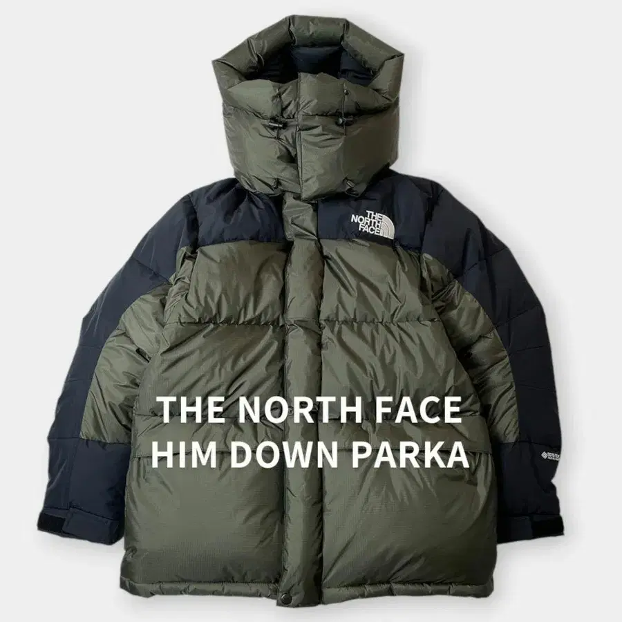 올리브 그린과 블랙의 배색이 특징인 THE NORTH FACE의 HIM DOWN PARKA.