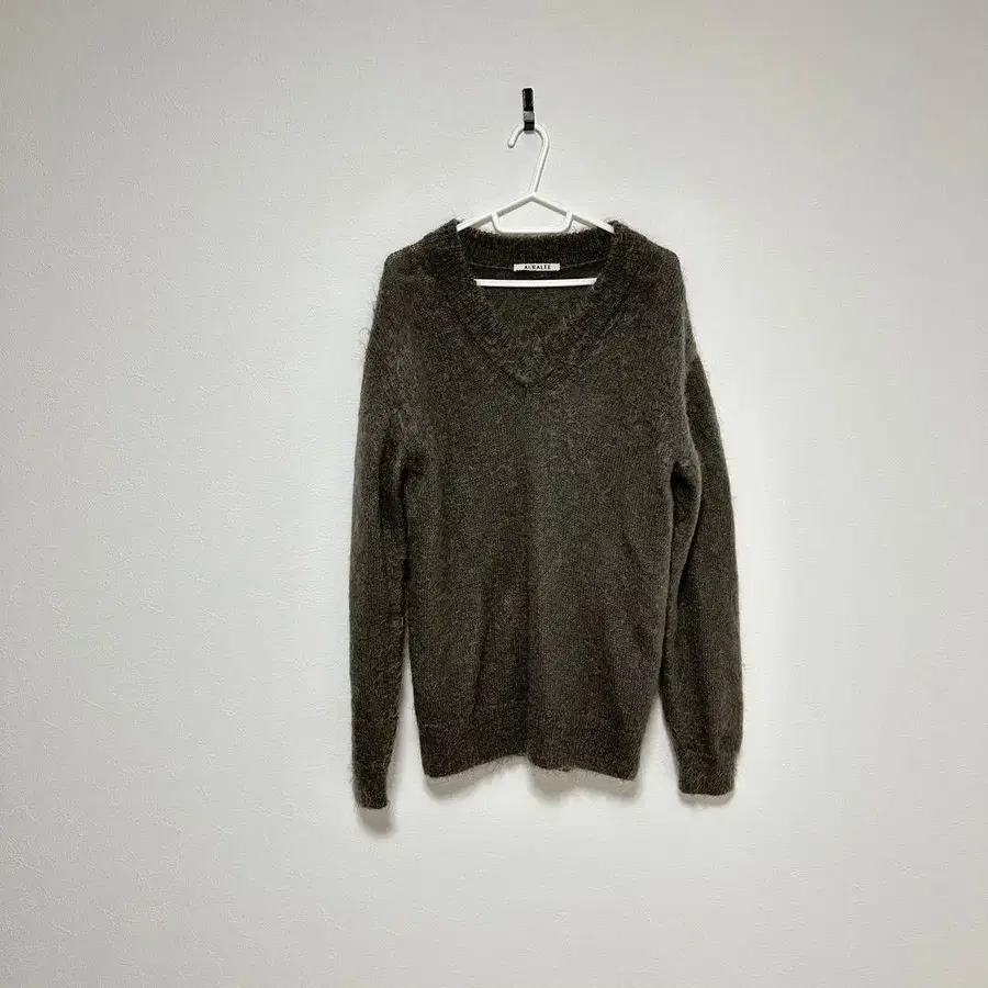AURALEE 모헤어 V넥 스웨터 긴팔 다크 그레이