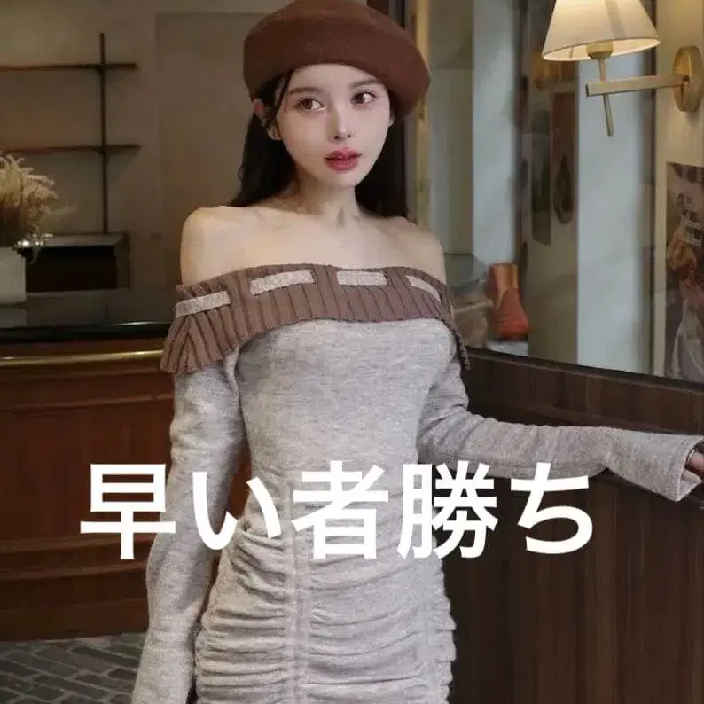 다리치 오프숄더 니트 미니 원피스