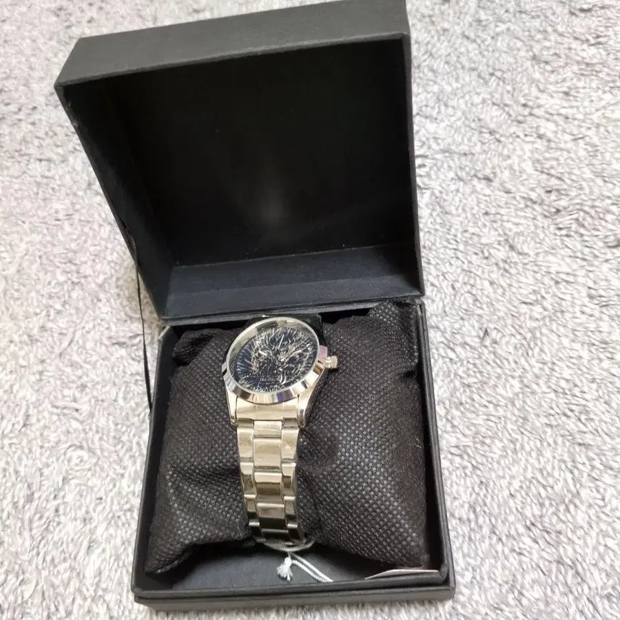 자동 와인딩 시계 스켈레톤 화이트/실버