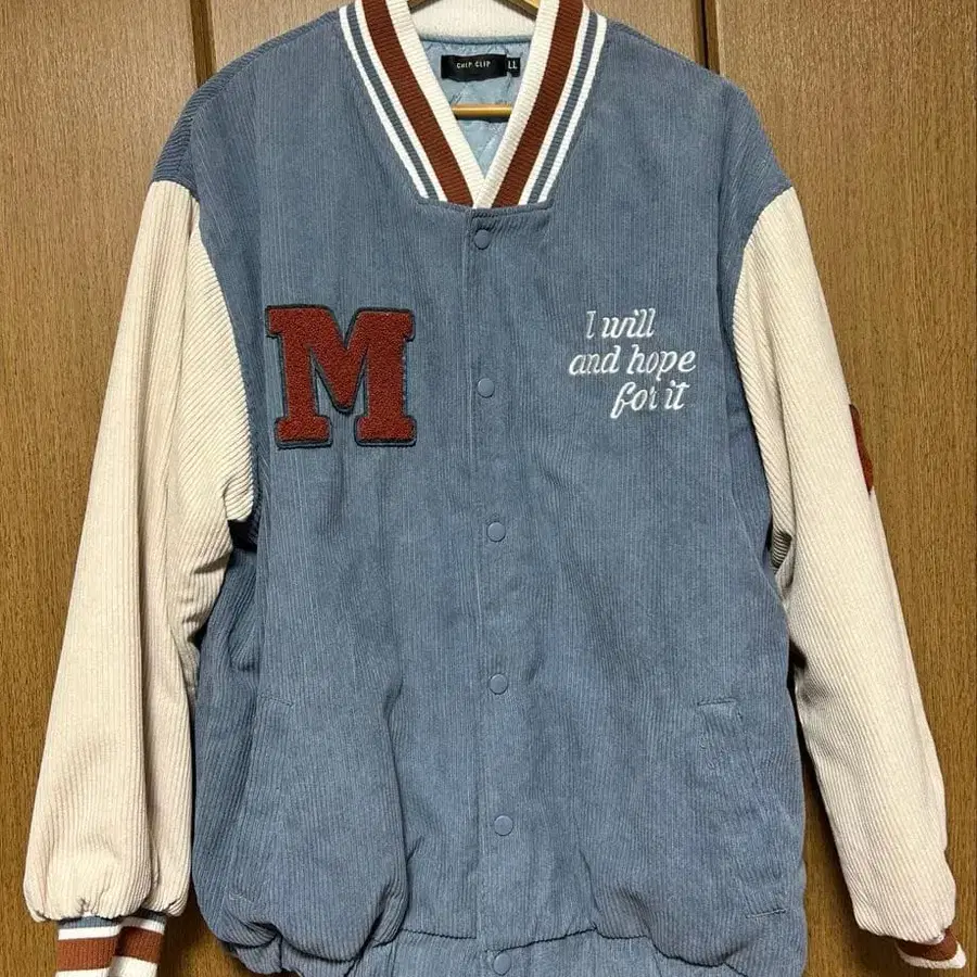 코듀로이 소재의 바시티 자켓, 프론트에 자수와 번호 86이 있습니다. 귀여운 디자인으로 소재도 입기 편한 소재입니다. 다가오는 시기에 딱 맞으니 꼭 구매 부탁드립니다! - 디자인: 코듀로이 소재, 자수 포함 - 특징: 프론트에 [ M ] 로고와 [ I will and hope for it ] 자수 - 번호: 86 자수 - 소매: 리브 소재의 소매 방문해 주셔서 감사합니다. 색상 - 블루 계열 얼룩, 찢김, 냄새 등 - 없음