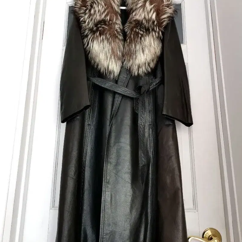 퍼 트리밍 가죽 롱 코트 소가죽 일본제 11호