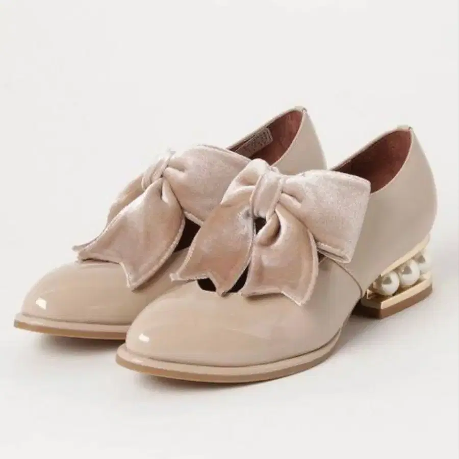 제프리 캠벨 에나멜 신발 베이지 벨로아 리본
