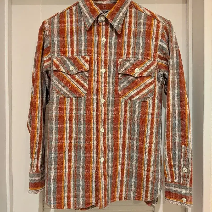 [ Cushman ] 긴팔 옴브레 체크 플란넬 셔츠 오렌지 빨검 체크