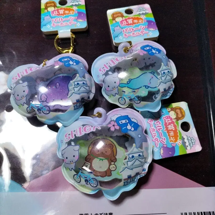 시가현 한정판 키링 3세트 시가라키 너구리, 비와호, 큰 메기