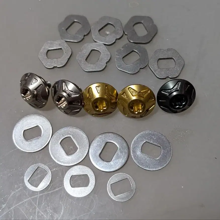 리브 다이와 B1 타입 너트 와셔류 세트 새상품 렌치 포함 너트 컬러: 티타늄 2개, 골드 2개, 건메탈 1개 다이와 B1 타입은 주로 스티즈 및 지리온에 사용됩니다.