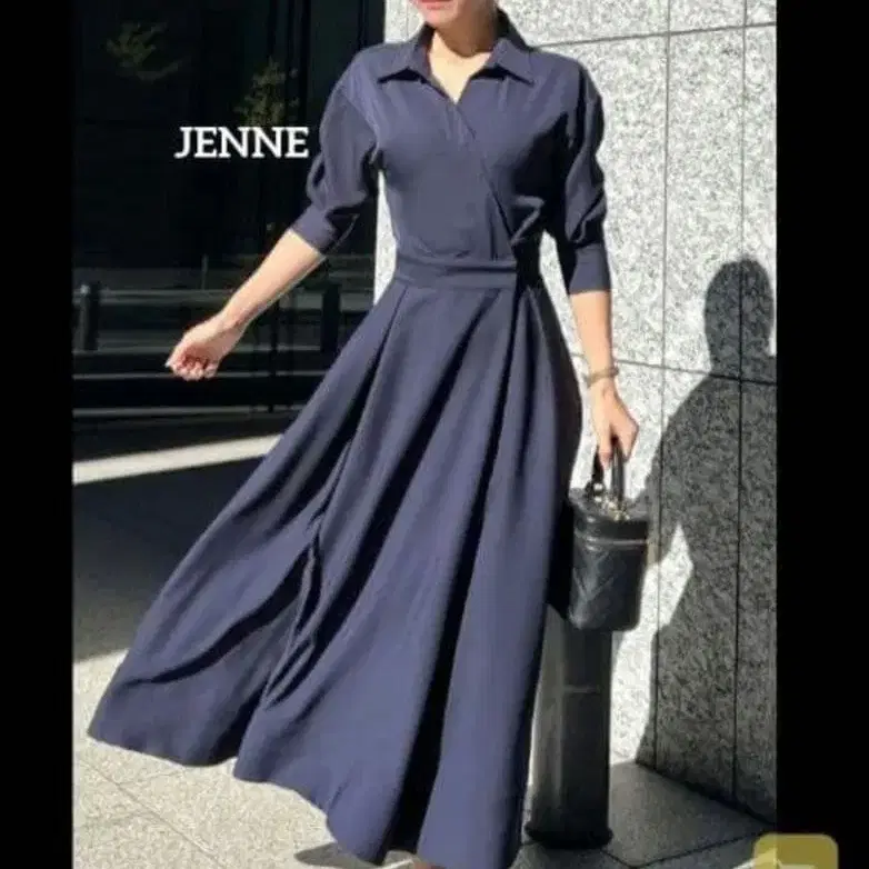 JENNE 카슈쿨 플레어 롱 원피스 네이비 S