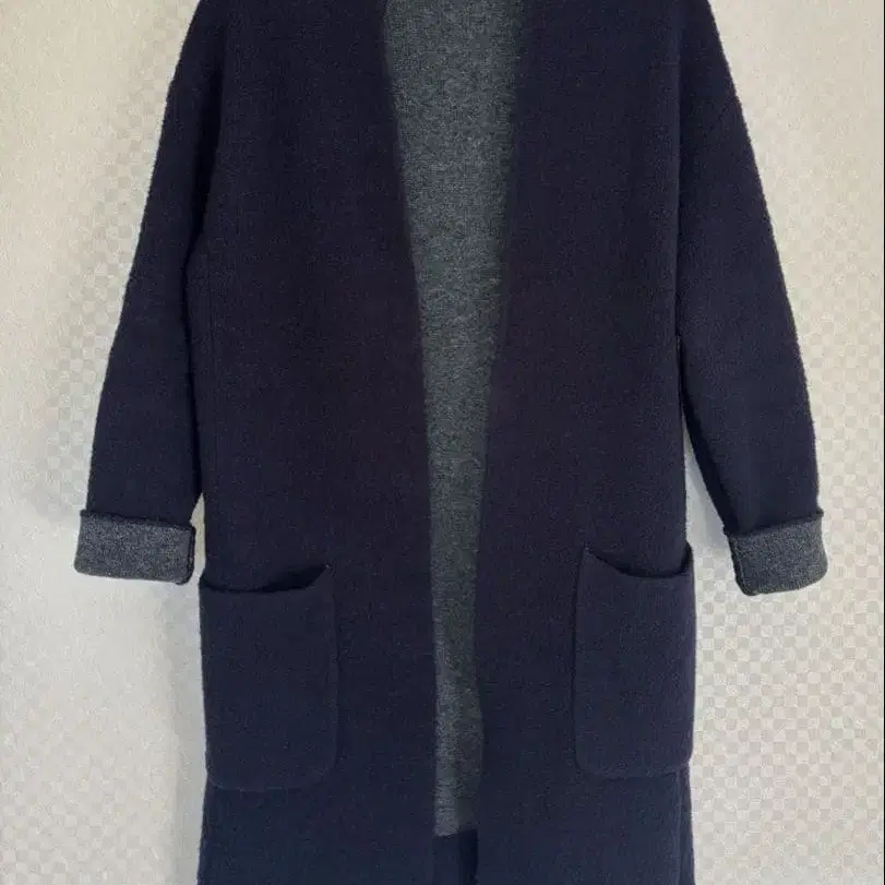 네이비 색상의 부클 니트 코트입니다.