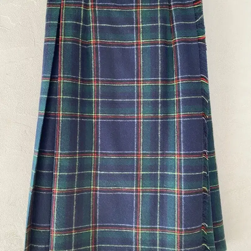 프론트는 랩 스커트, 백은 플리츠가 된 고급 실루엣으로, 약간 기모감이 있으면서도 매끄러운 광택의 울 혼방 소재는 따뜻하며, 가을/겨울 스타일에 딱입니다.