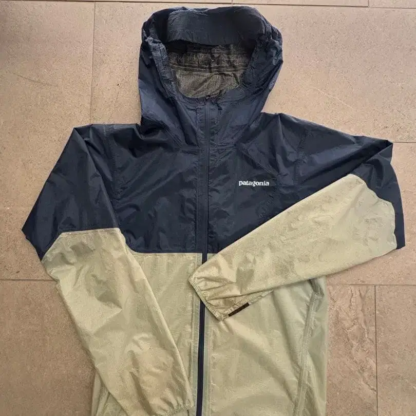 내구성 있는 나일론 소재를 사용한, 네이비와 라이트 그린의 콤비네이션 자켓. - 브랜드: patagonia - 컬러: 네이비/라이트 그린 - 사이즈: M - 소재: 나일론 방문해 주셔서 감사합니다.