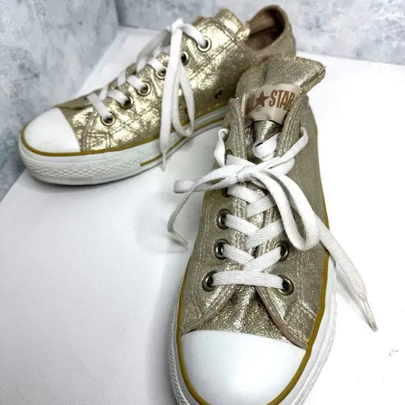 CONVERSE All ★ STAR ( A/S METALLIC CRACK LEATHER OX ) 골드 x 화이트