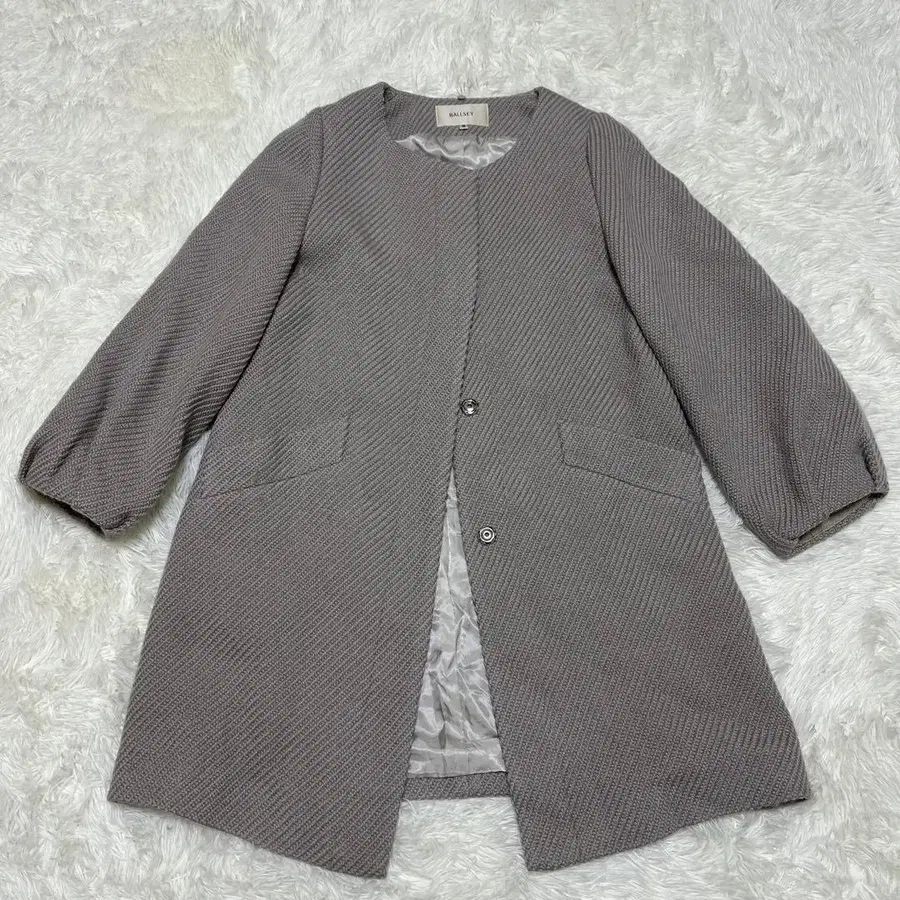 BALLSEY ( 보르지 ) 의 고급스럽고 세련된 노카라 코트입니다. 디테일에 신경 쓴 엘레강트한 디자인이 매력적인 아이템입니다. 소재는 고급 울을 사용했으며, 포근하고 입체감 있는 니트 직물 (니트와 같은 두꺼운 원단)이 특징입니다. 프론트는 스냅 버튼으로 개폐가 간편합니다.