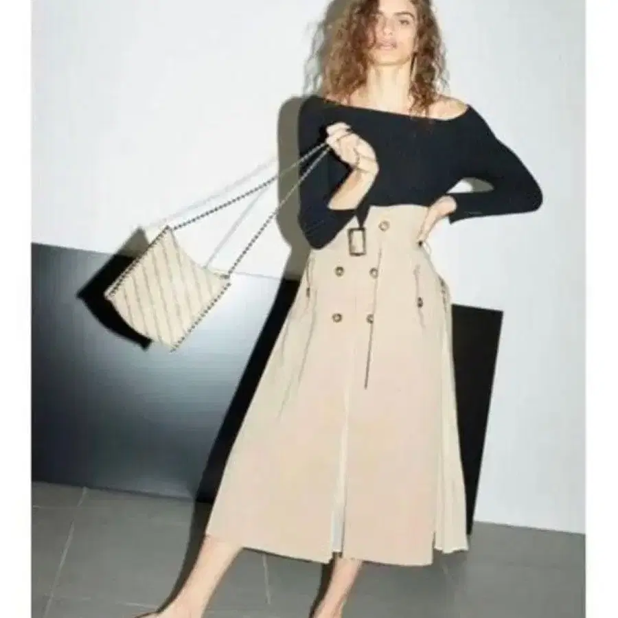 FRAY I.D 플리츠 콤비 플레어 스커트 베이지