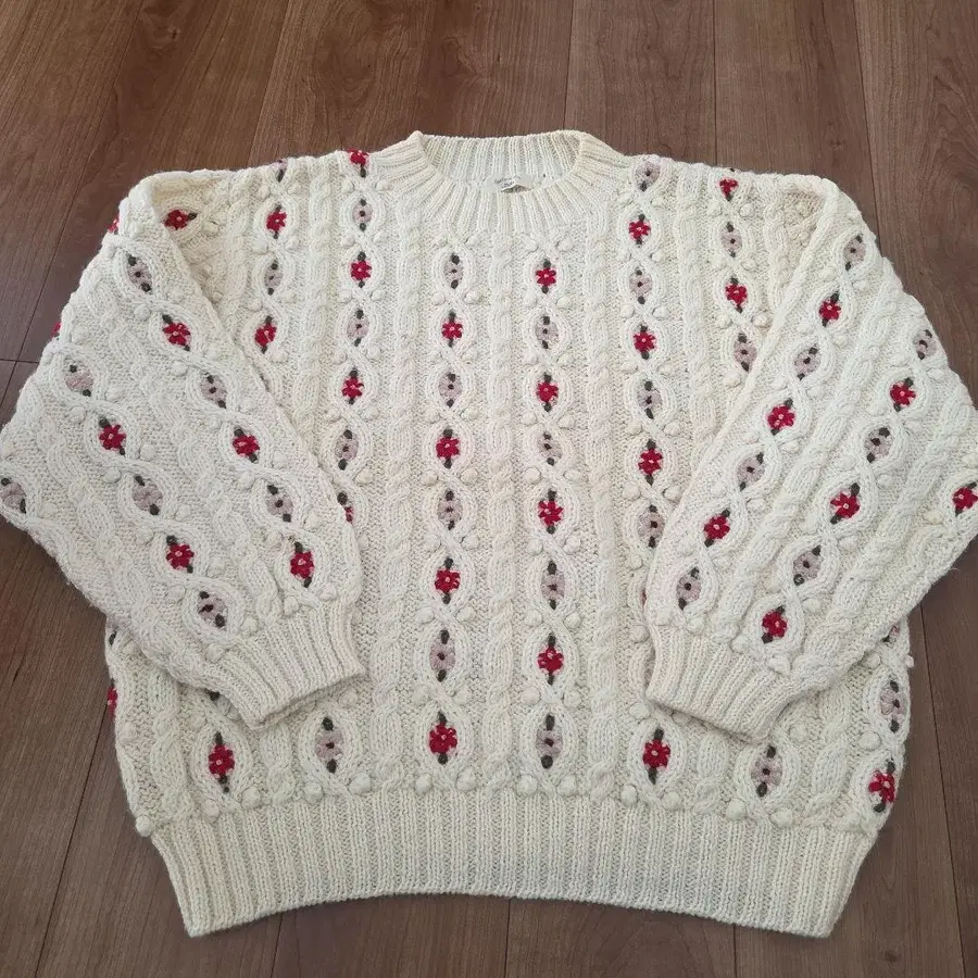 케이블 니트 스웨터, 꽃 무늬가 특징적인 긴팔 디자인. - 색상: 아이보리 - 디자인: 케이블 니트, 꽃 무늬 - 소매 길이: 긴팔 - 소재: 니트 어깨 너비 약 50 가슴 너비 약 62 기장 약 64 약간의 얼룩이 있지만 아주 귀여워요. 겨울에 딱 좋습니다. 구제 의류 레트로 자수 1843 87