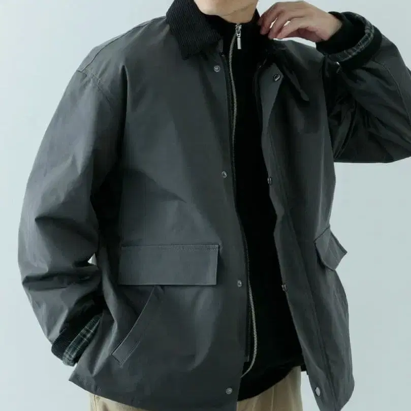 지퍼나 버튼으로 실루엣 조절이 가능합니다. 카라는 코듀로이 원단으로 절개하여, 앞을 잠근 스타일링에서도 심플해지지 않고 멋스럽습니다.