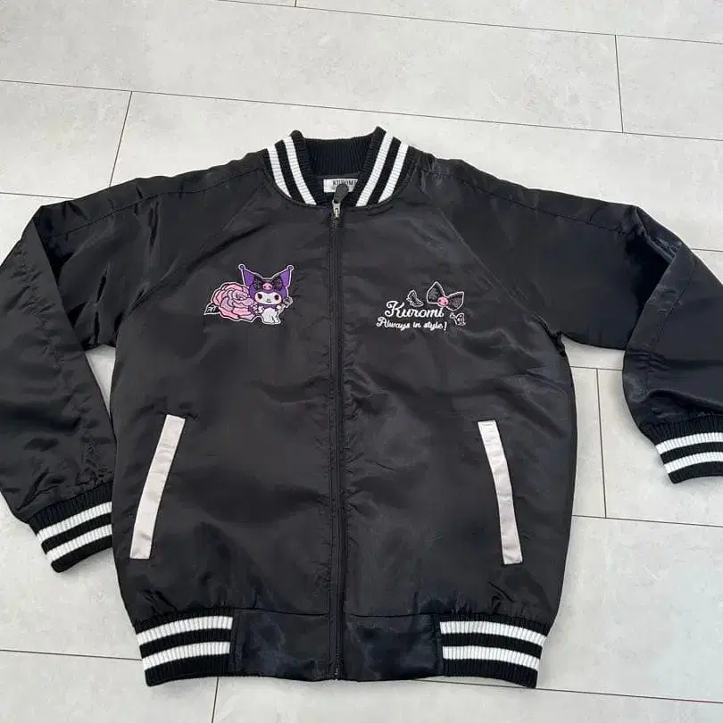 블랙 컬러의 새틴 소재, Kuromi 자수가 특징인 스카잔. 사이즈 L - 디자인: 블랙 컬러 스카잔, 앞면에 고양이 자수 - 디자인: 뒷면에 [ Kuromi ] 자수와 꽃 디자인 - 자수 상세: 색색의 자수, 보라색 모자를 쓴 캐릭터 - 소재: 새틴 소재의 외관 - 리브: 화이트 블랙 스트라이프 리브가 있는 옷깃과 소매. 방문해 주셔서 감사합니다.