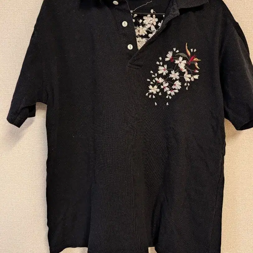 Japanese Domestic 꽃무늬 자수 피케 셔츠 L 블랙