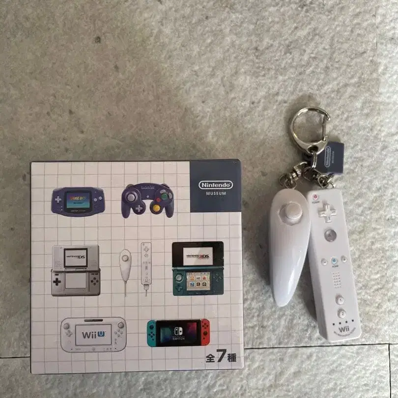 Nintendo Museum의 Wii 리모컨 디자인 키링으로, 게임기 미니어처가 특징입니다.