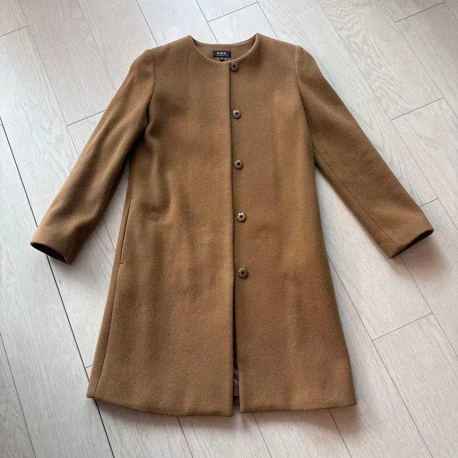 심플한 디자인의 세련된 브라운 코트, A.P.C. 34 사이즈입니다.