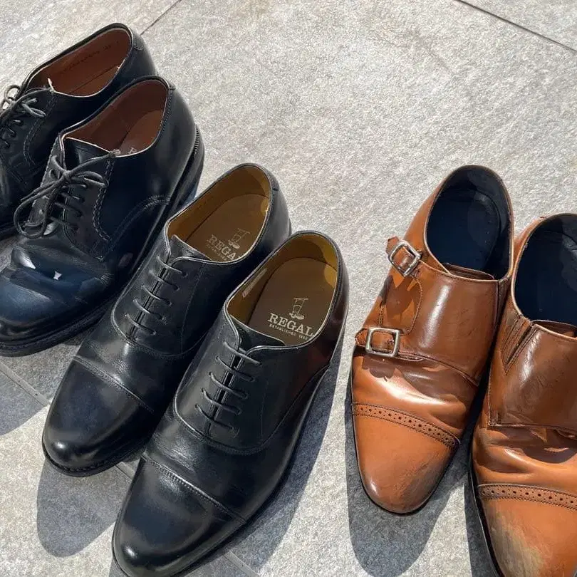 REGAL 비즈니스 슈즈 3켤레를 일괄로 양도합니다. 카멜 24.0 블랙 24.5 x2 입니다. 평소에는 레드시더 슈키퍼로 모양을 유지하고 있었습니다. 즉시 구매 가능합니다.