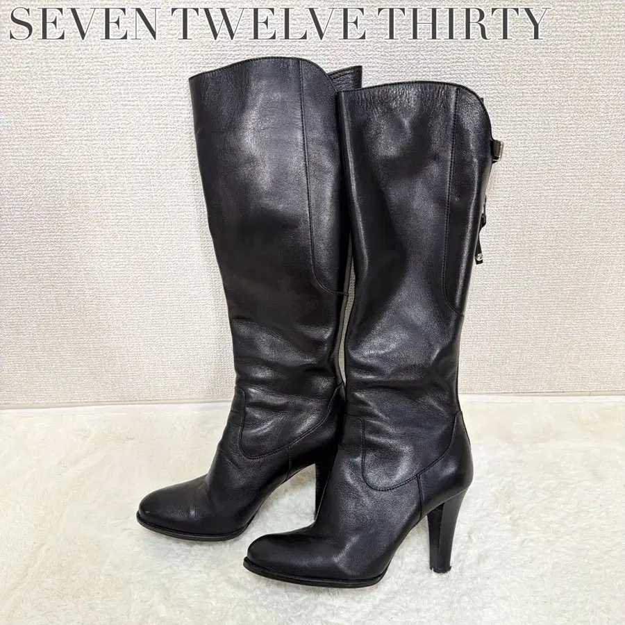 새상품급 고급 천연 가죽 롱 부츠 블랙 23.5cm