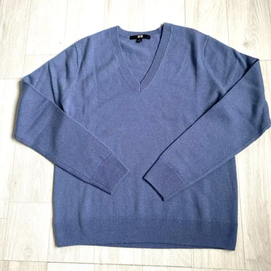유니클로 캐시미어 100% V넥 니트 블루 M