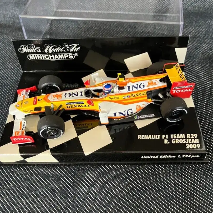 2009년 모델의 르노 F1 팀 R29, R. 그로장 드라이버의 한정판 미니카.