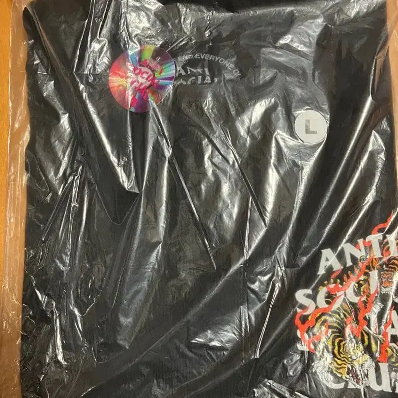 Anti Social Social Club L 사이즈 블랙 컬러 T셔츠, 그래픽 디자인이 특징입니다.