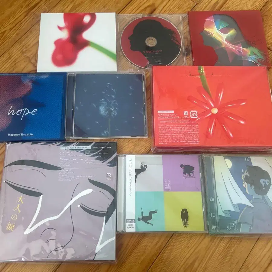 마카로니 연필의 CD, DVD 등입니다. '타마시이노 이바쇼'를 제외한 나머지는 DVD가 포함되어 있습니다. 가운데 오른쪽 것은 마카피 군 키링 포함. 왼쪽 아래 것은 포토북 포함입니다.