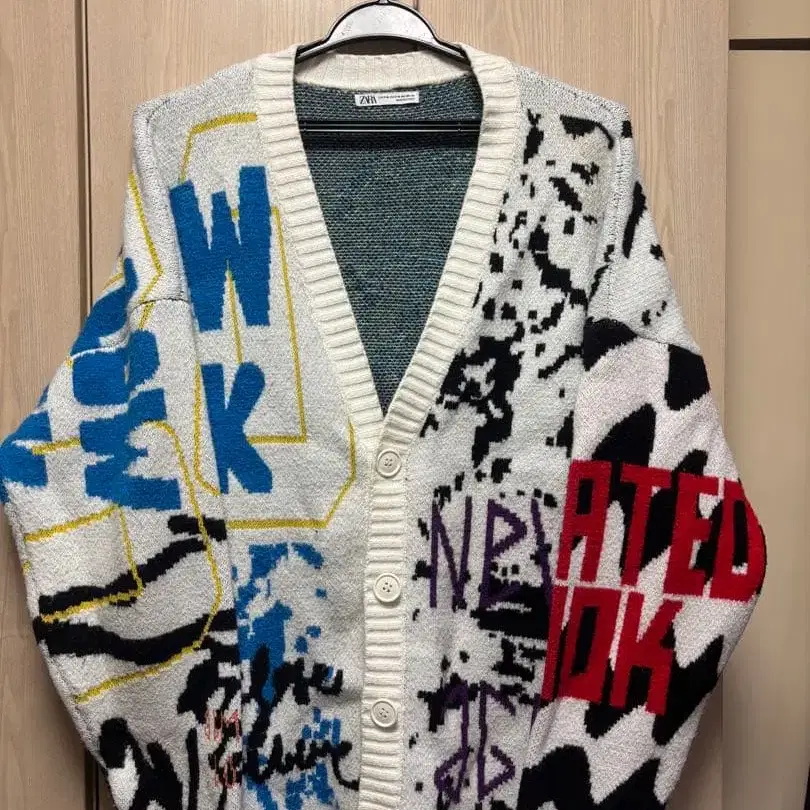 그래픽 프린트가 특징인 ZARA 가디건. - 브랜드: ZARA - 디자인: 그래픽 프린트 - 색상: 화이트/멀티 컬러 - 스타일: 가디건 - 사이즈: L 방문해 주셔서 감사합니다.
