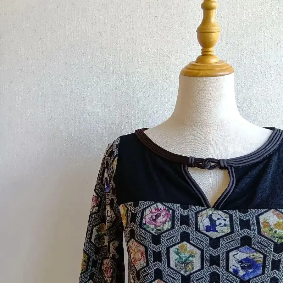 상의 반팔 튜닉 블랙 골드 한국제 빈티지