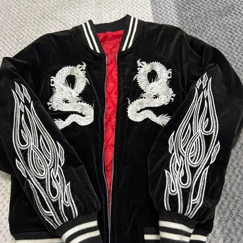 스카잔 블랙 골드 드래곤 자수 JAPAN 리버서블