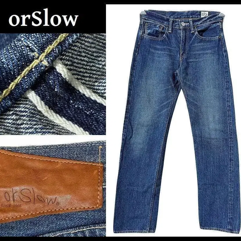 새상품급 오어슬로우 가죽 패치 USED 가공 셀비지 데님 팬츠 S