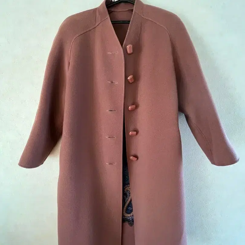 페이즐리 무늬 안감의 핑크 롱 코트